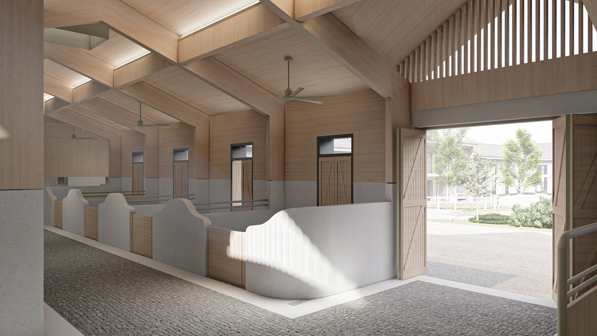 The project is developed as a hybrid facility combining a hotel, horse stables, and spacious ...